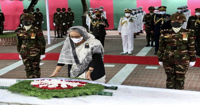 The prime minister along with cabinet members, party leaders and workers also joined a milad and doa mahfil on the mausoleum premises marking the National Mourning Day.