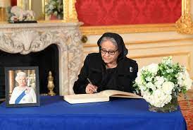 Sheikh Hasina there observed one-minute silence as the mark of respect to the late Queen at the Westminster Hall of the Palace of Westminster where the body of Elizabeth II was kept lying-in-state.