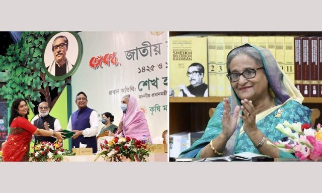 She virtually handed over the award, the highest state recognition in the agriculture sector, among the winners in 10 categories, from her official residence Ganabhaban here.